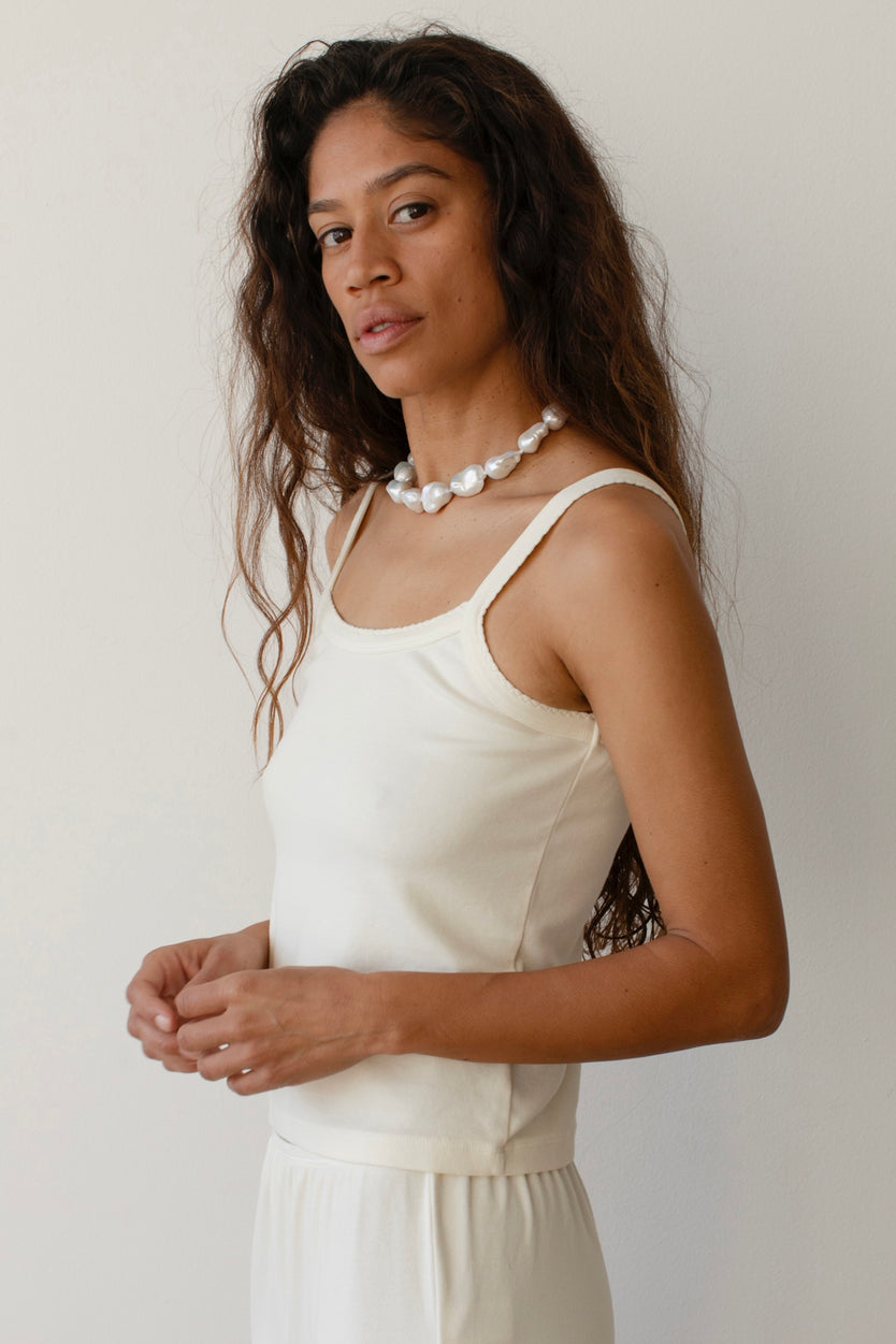 Designed with an elastic waist, cropped length, and subtle baby rib texture—easy to style, effortless to wear.