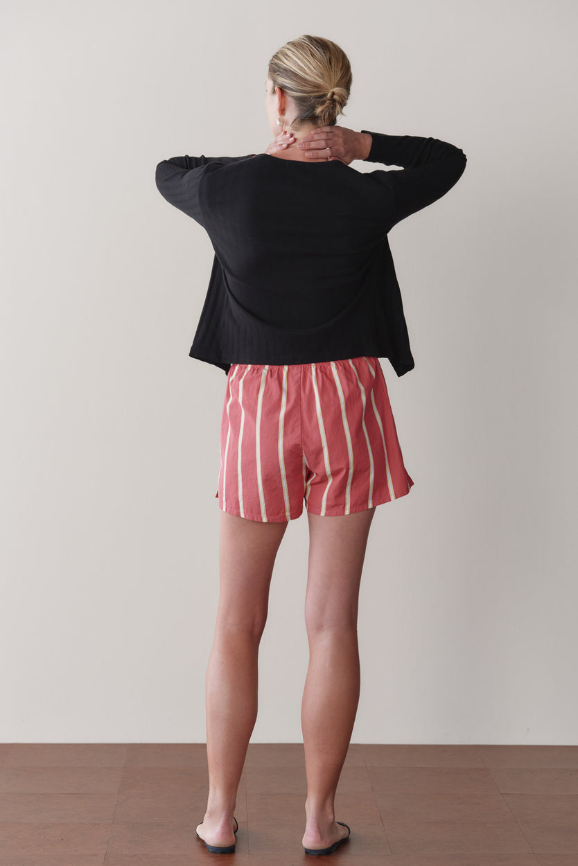 Maya is 5’9”, 34” bust, 25” waist, 33.5” hips. She is wearing a size small.